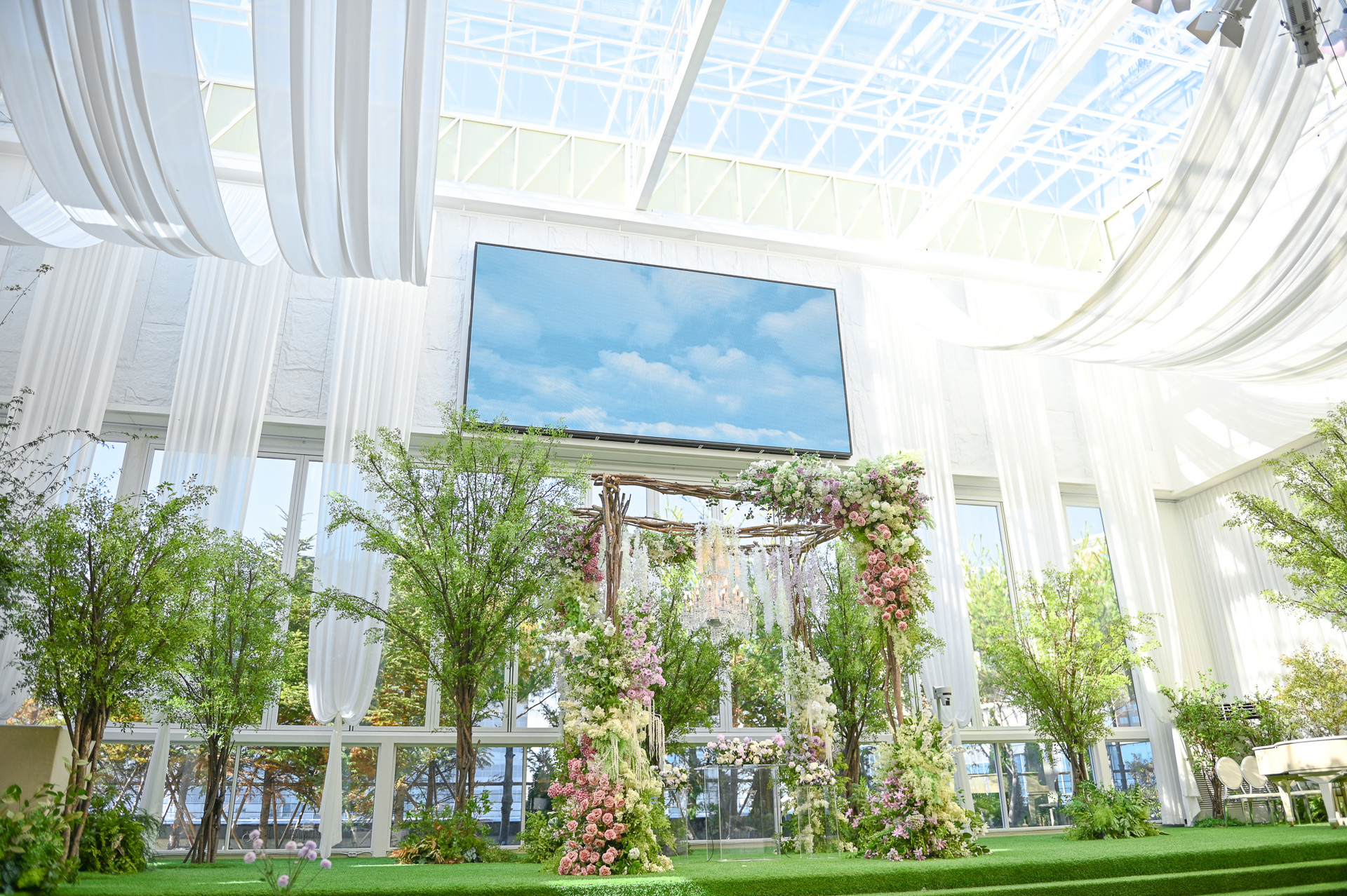 예식이 시작되는 순간 유리벽은 부드럽게